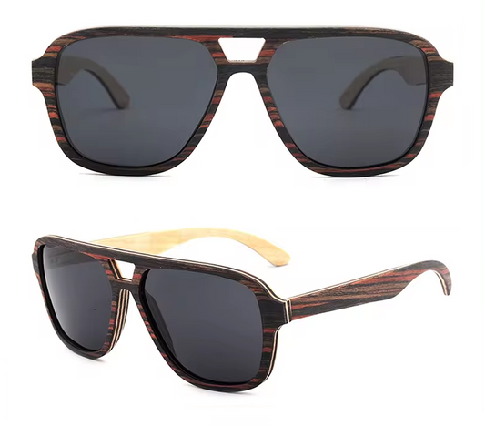 Our Aarron Range Aviator Style Wooden Veneer Sunglasses